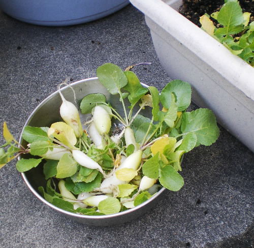 なので・・・・・・ベランダで育てていたプチ大根を、収穫させてみる事にしました。