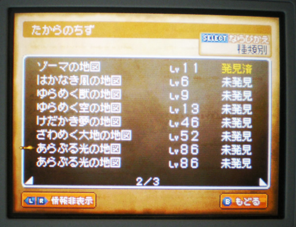 この間の有名宝の地図には正式名があるってコメントで、気になったあたくしは早速自分のデータを確認・・・すると、あるじゃないっすか!通称・川崎ロッカーの地図「あらぶる光の地図 Lv86」が!!!!2つも![]()