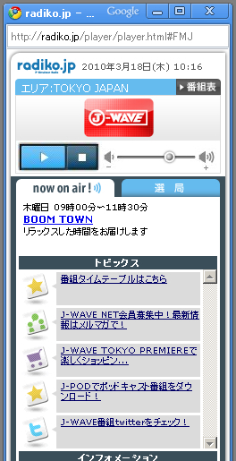 <<こんな感じのウィンドウが出てきて選局しつつ聴ける。